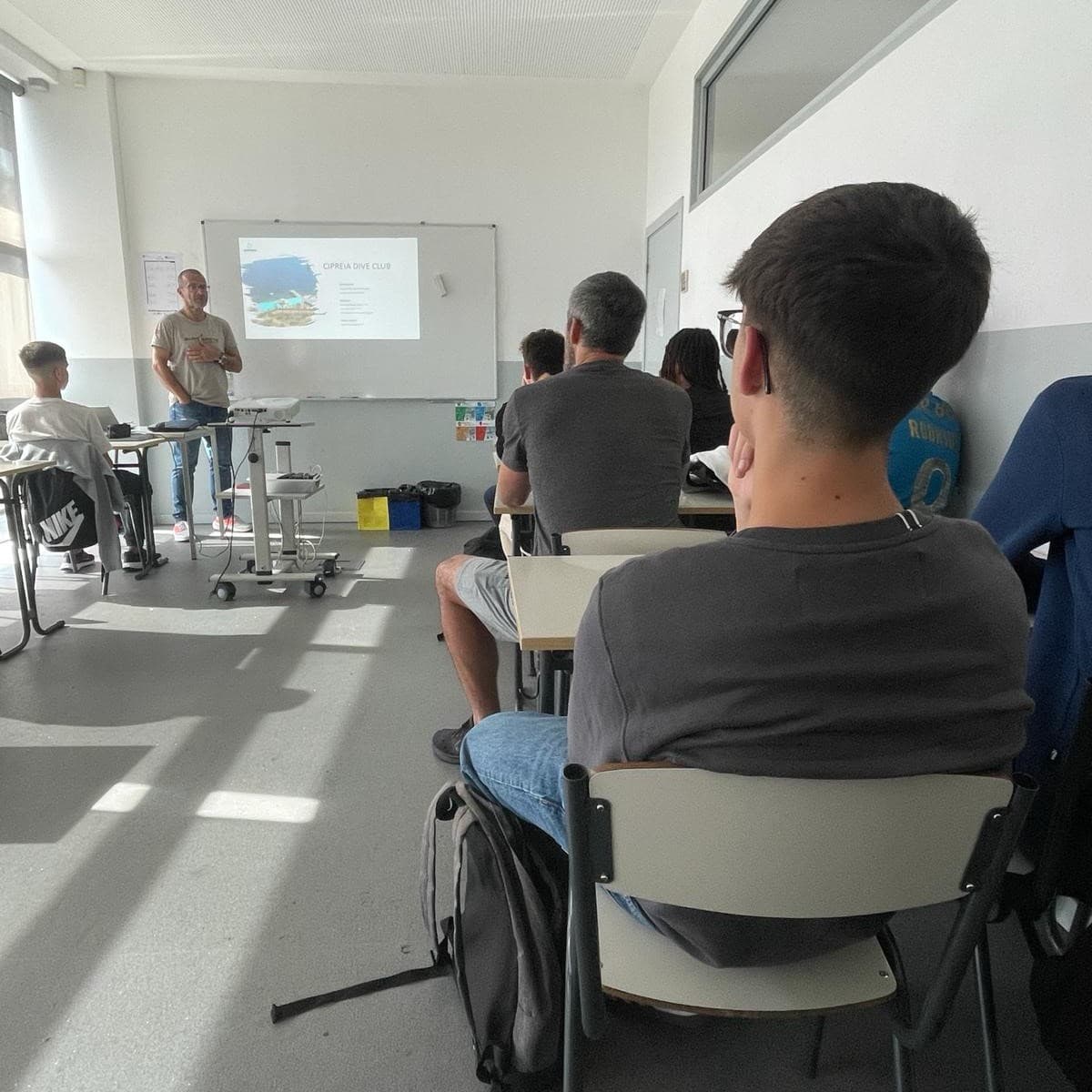 No dia 6 de março integrada na disciplina de Modalidades Coletivas e Atividades de Exploração da Natureza de Técnico(a) de Desporto 5 (1º ano), os alunos assistiram a uma palestra dinamizada pelo Eng.º Ricardo Germano da empresa Cipreia Dive Club.
